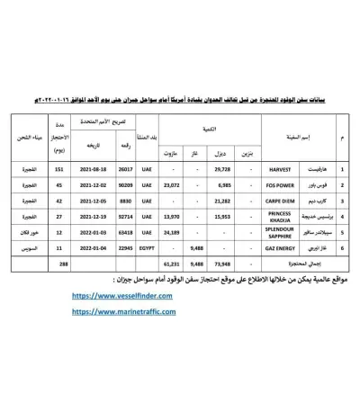 تعقيبا على جملة الأكاذيب والمغالطات الصادرة خلال الساعات القليلة الماضية عن تحالف العدوان تؤكد شركة النفط اليمنية على الآتي: - بلغ عدد سفن الوقود المفرج عنها خلال العام الماضي (19) سفينة (بنزين،ديزل ،مازوت،غاز) منها سفينتا بنزين بكمية إجمالية (57,871) طن وهي تمثل نسبة 4% من الاحتياج الفعلي، إضافة إلى عشر سفن تحمل مادة الديزل بكمية اجمالية (198,983) طن وتمثل 13% من الاحتياج الفعلي (7 سفن ديزل تتبع مصانع القطاع الخاص ، 3 سفن ديزل مخصصة للاستهلاك العام). - السفينة "CARPE DIEM" والتي قيل بأنه قد سمح لها بالدخول الى ميناء الحديدة تحمل كمية (21,282) طنا من مادة الديزل تابعة لأحد مصانع القطاع الخاص وغير مخصصة للإستهلاك العام وقد مر على احتجازها (42) يوما إلى جانب السفن المحتجزة منذ فترات أطول. - استمرار تضليل الرأي العام واجترار سلسلة أكاذيب لا تغير شيئا من واقع الحصار والقرصنة على سفن الوقود والمستمر منذ سنوات والذي بلغ ذروته في ٢٠٢١ ومازال متصاعدا بوتيرة خانقة تعبر عن إفلاس عدواني وأممي يعجز حتى عن تلفيق ذرائع لاستمراره في استخدام الاحتياجات العامة للسلع الأساسية وفي مقدمتها واردات الوقود كسلاح شامل يستهدف المواطنين كافة. -شمولية الأزمة في جميع محافظات الجمهورية اليمنية يثبت مسؤولية تحالف العدوان عن كامل الاختناقات التموينية الحادة في مختلف المناطق اليمنية. - غياب الدور والصوت الأممي يضيف فشلا جديدا إلى سجل سقوطها المخزي وانحيازها الذميم وصولا إلى عجزها الذي بلغ مداه بحيث لم تعد تتمكن حتى من الحفاظ على ماء الوجه .