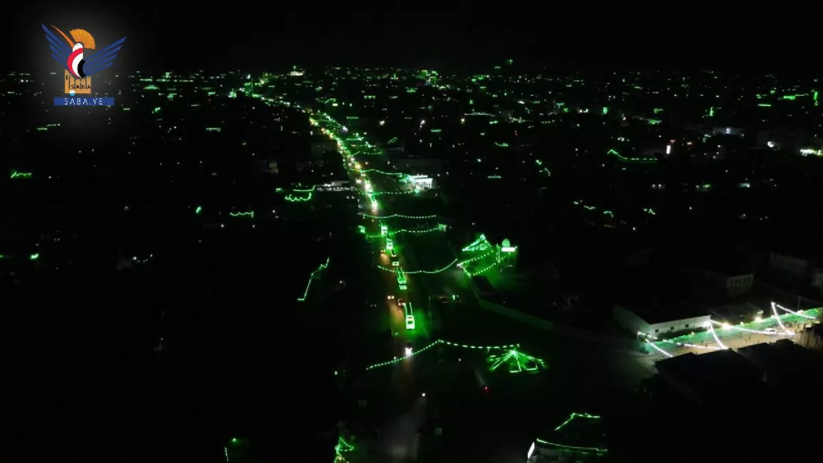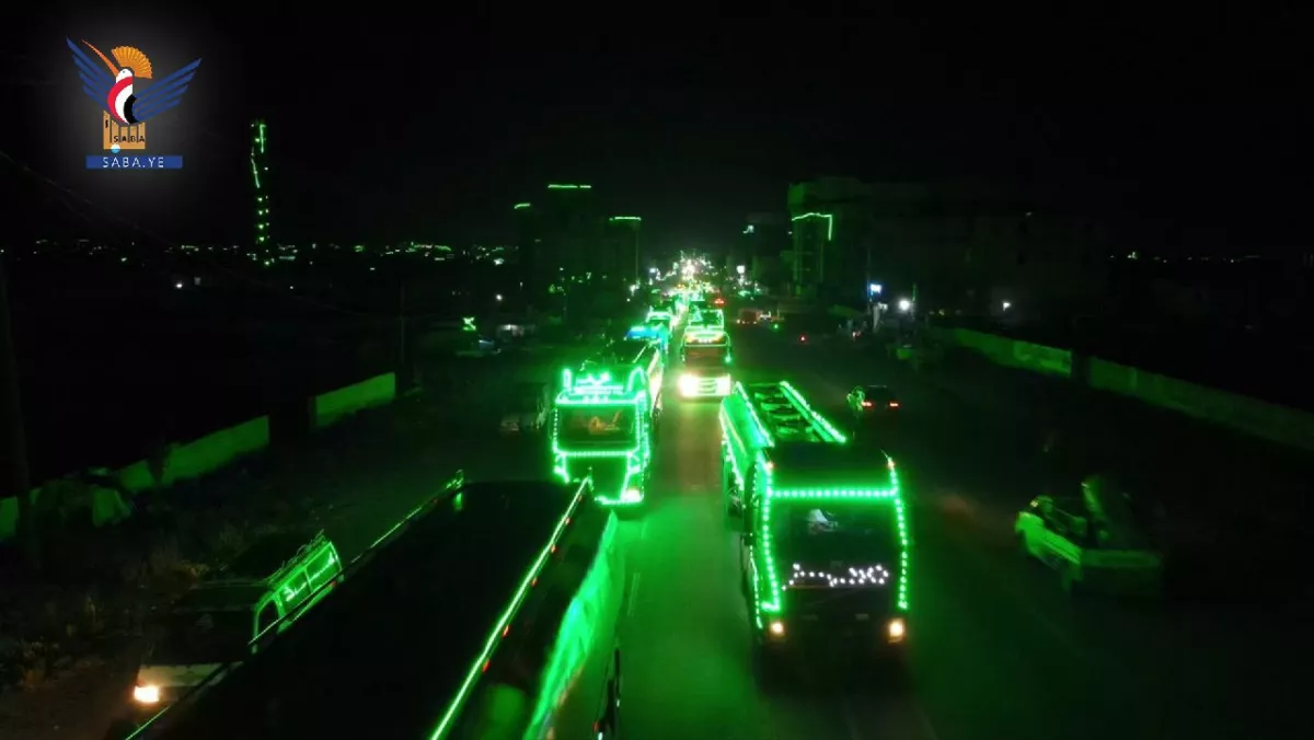 جابت مسيرة ضوئية تضم 100 قاطرة بترولية متوهجة باللون الأخضر عددًا من شوارع مدينة ذمار احتفاء بذكرى المولد النبوي الشريف.