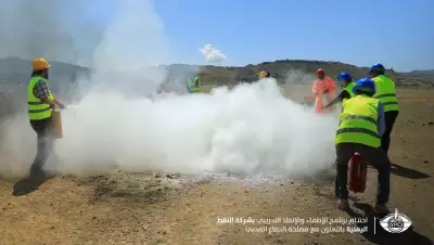 تنفيذ تطبيق عملي لخريجي دورة الاطفاء والإنقاذ في منشآت شركة النفط